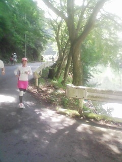 平らな所はスタートの毛呂山総合公園の近所だけしかありません。スタートして約20キロ鎌北湖辺りで何だか足がヨレて両足が痙攣。ムカムカ吐き気もしだして木陰で休憩。一時間以上休んで復活はしたものの関門の制限時間が・・・とりあえずDFでも行けるとこまでは行ってみようと走り出し??歩きだしました。フル42.195を過ぎてもう少しで折り返しの所で強制収容されちゃいました。残念!